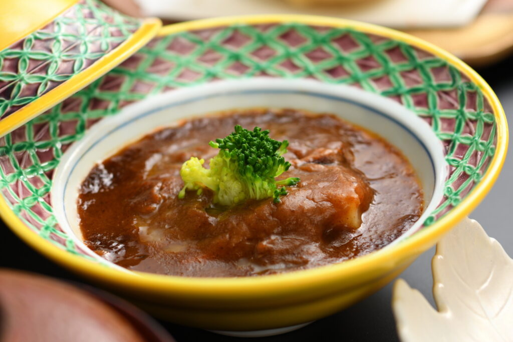 野菜と一緒に陶板で蒸し焼きにした「いわて牛」は
